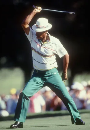 In addition to impressing spectators with his play, Rodriguez attracted much attention with his showmanship on the course. For instance, after making a birdie (scoring one stroke less than par on a hole), he often covered the hole with his signature straw hat to keep the “birdie” from escaping. At other times, after sinking a difficult or important putt, he celebrated by performing a “sword dance”—mimicking the movements of a bullfighter as he waved his putter around like a sword.